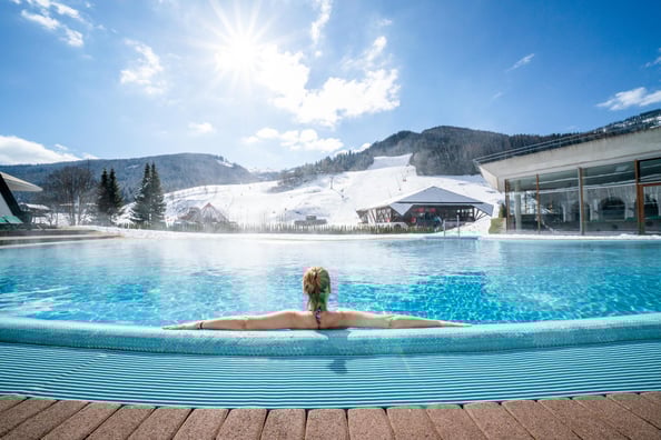 Über ganze 3 Ebenen und 12.000 Quadratmeter erstreckt sich die beeindruckende Sauna- und Wellnesslandschaft des Thermal Römerbad. Dabei wird jeder Ebene ein anderes Thema gewidmet. Ideal, um nach einem aufregenden Tag in den Bergen sich zu erholen und die müden Muskeln wieder zu Kräften kommen zu lassen. Das Highlight: Von der Panoramaterrasse und vom Außenbecken haben Sie eine wunderbare Sicht auf die Pisten, auch auf die berühmte Weltcup-Abfahrt „Kärnten – Franz Klammer“.